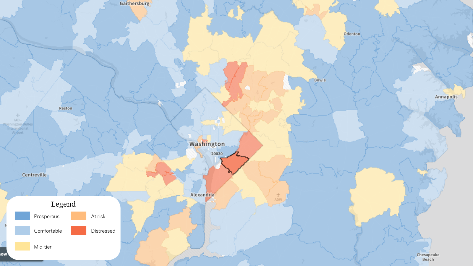 In contrast to most other American cities, all five of the nation’s capital’s distressed and at-risk zip codes score highly on economic connectedness.