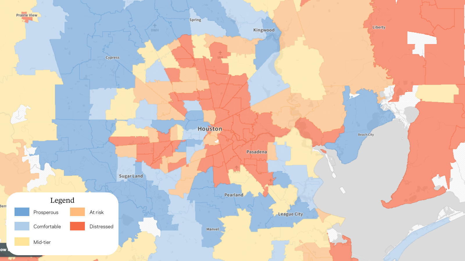 Low economic connectedness prevails across Houston’s expanse of distressed zip codes