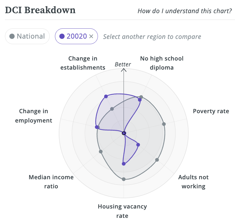 These stories bring the Distressed Communities Index (DCI) to life and demonstrate how the index can be used to understand the challenges and opportunities that communities face across the United States. These stories are intended to both inform and inspire.
