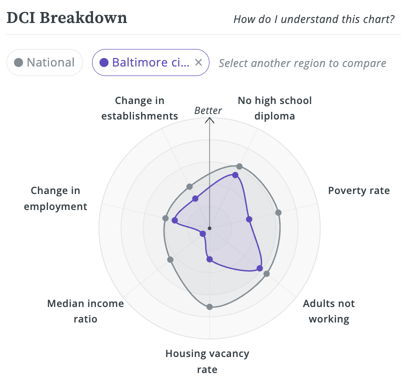 These stories bring the Distressed Communities Index (DCI) to life and demonstrate how the index can be used to understand the challenges and opportunities that communities face across the United States. These stories are intended to both inform and inspire.