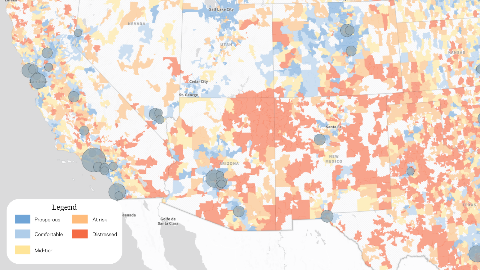 At its heart, the DCI is a tool for exploring the map of American well-being. The stories presented here highlight the many different geographies of economic inequality that traverse the country and explain why they matter, influencing every aspect of life, from the friends one makes to how long one can expect to live.